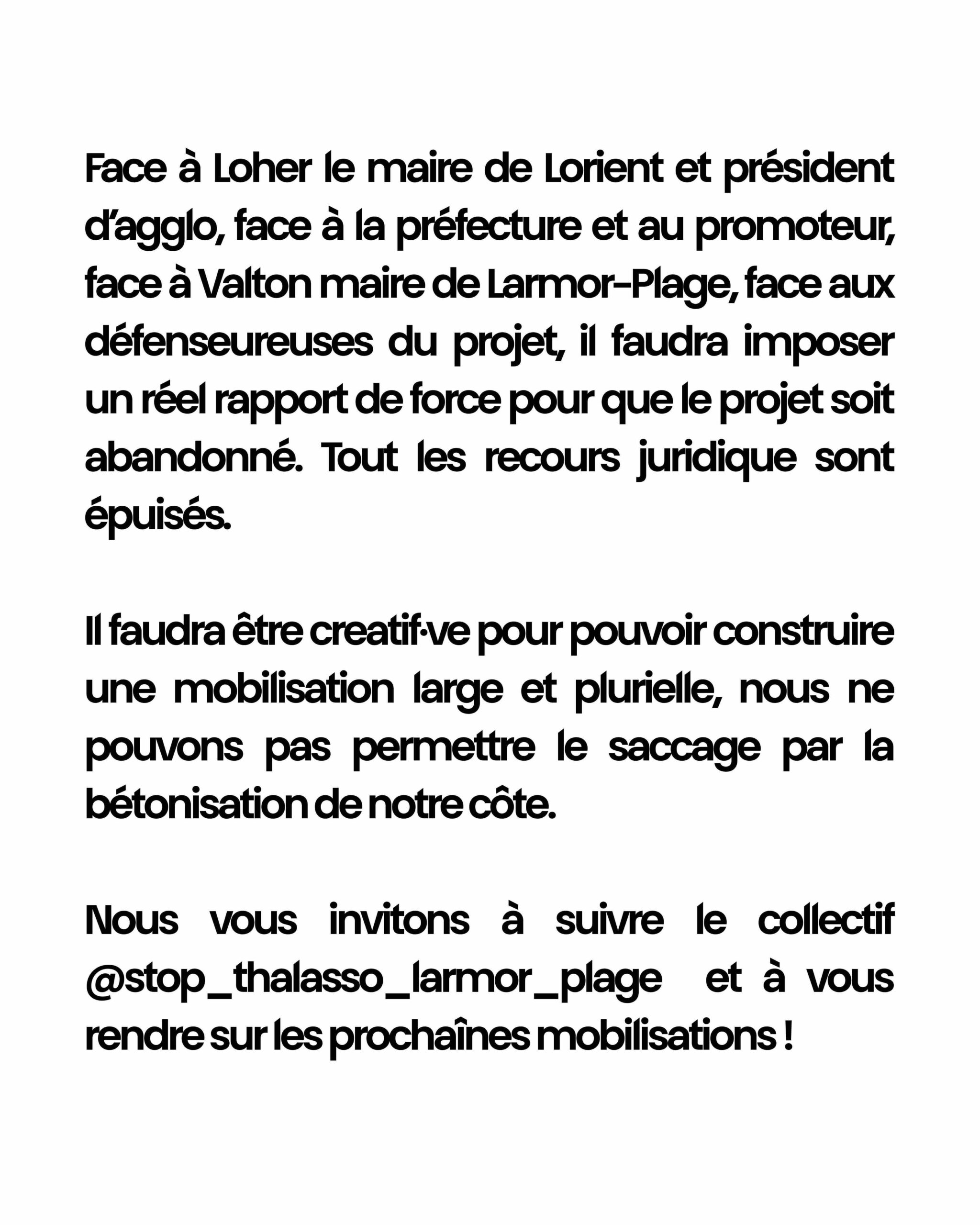 Nous vous invitons à suivre @stop_thalasso_larmor_plage sur insta et à vous rendre aux prochaines mobilisations !