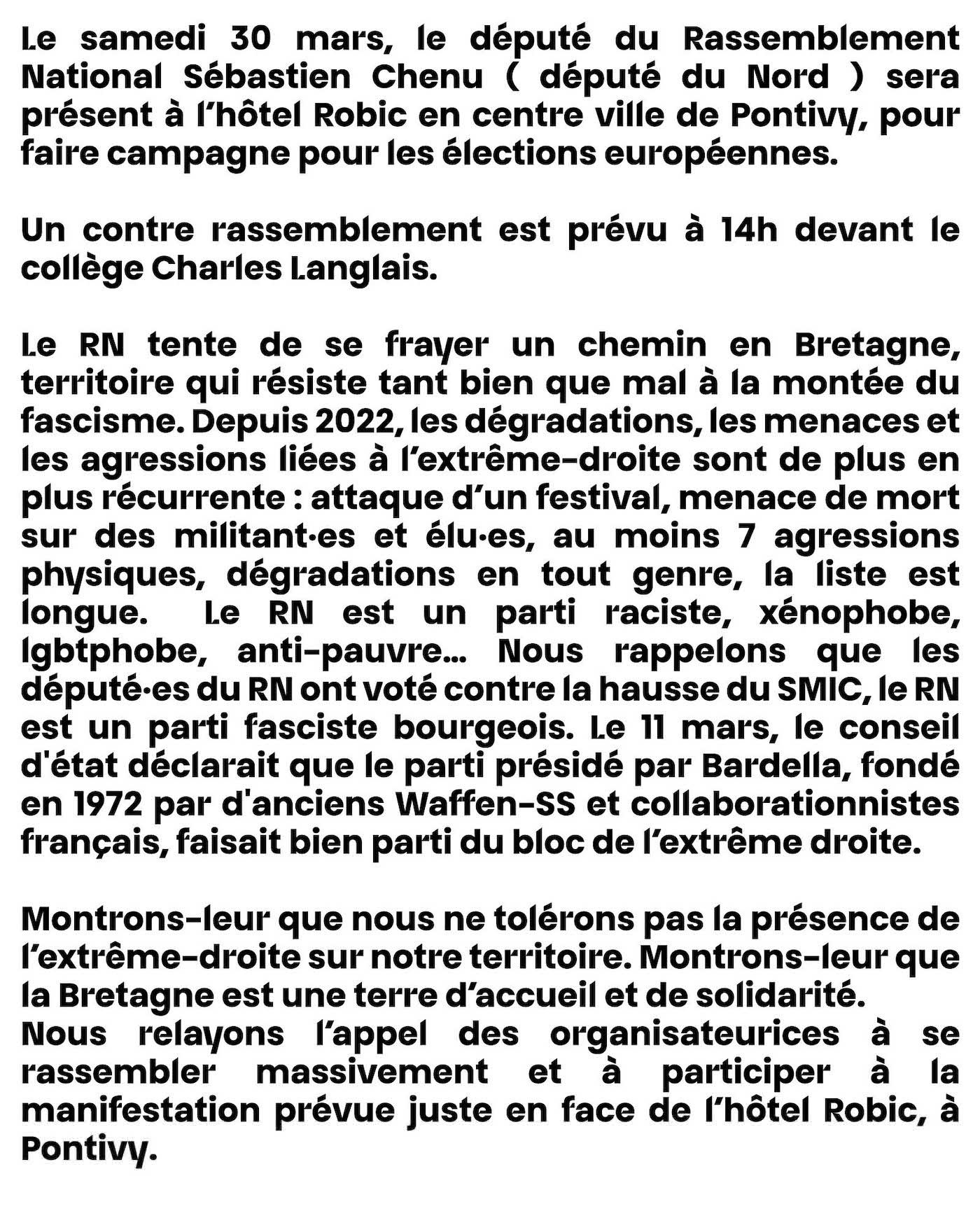 RASSEMBLEMENT CONTRE LA VENUE DU RN – PONTIVY 30/03