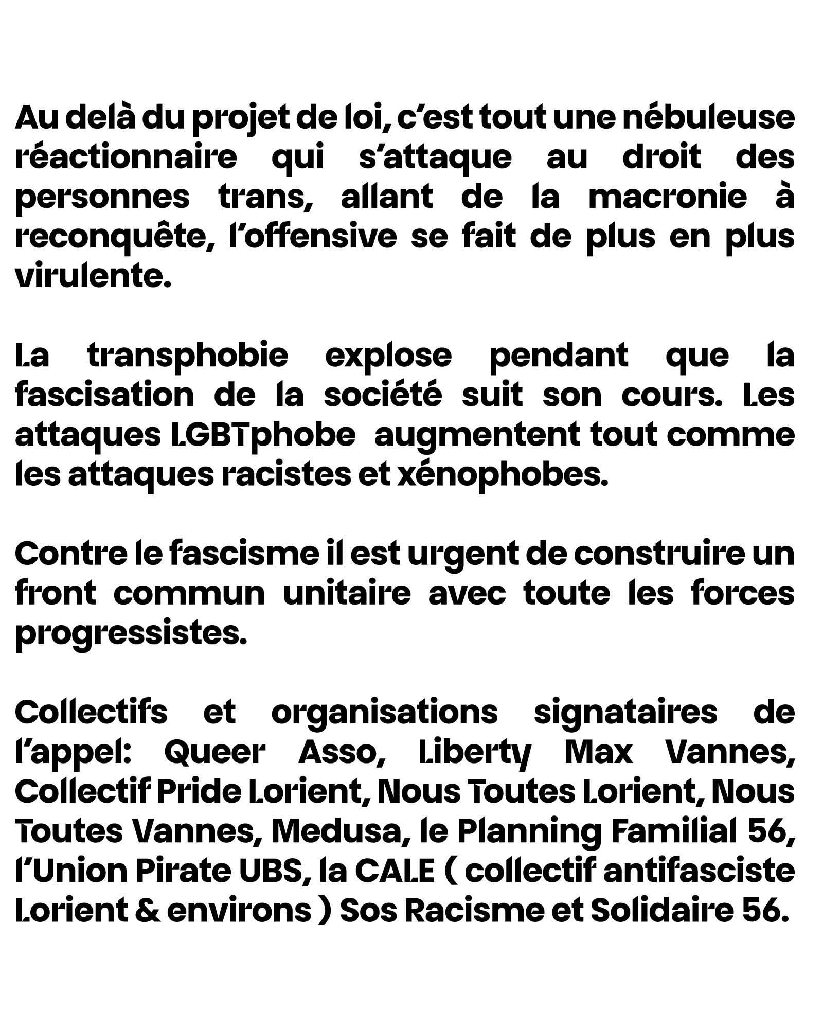 Mais revenons à cette tribune. Il est regrettable de ne voir mentionner à aucun moment l’antifascisme, pourtant indissociable de nos luttes communes. Si aux yeux des réformistes, seule la lutte par les moyens légalistes seraient légitimes, le combat antifasciste ne doit pas être mené dans un cadre mené par les institutions et le